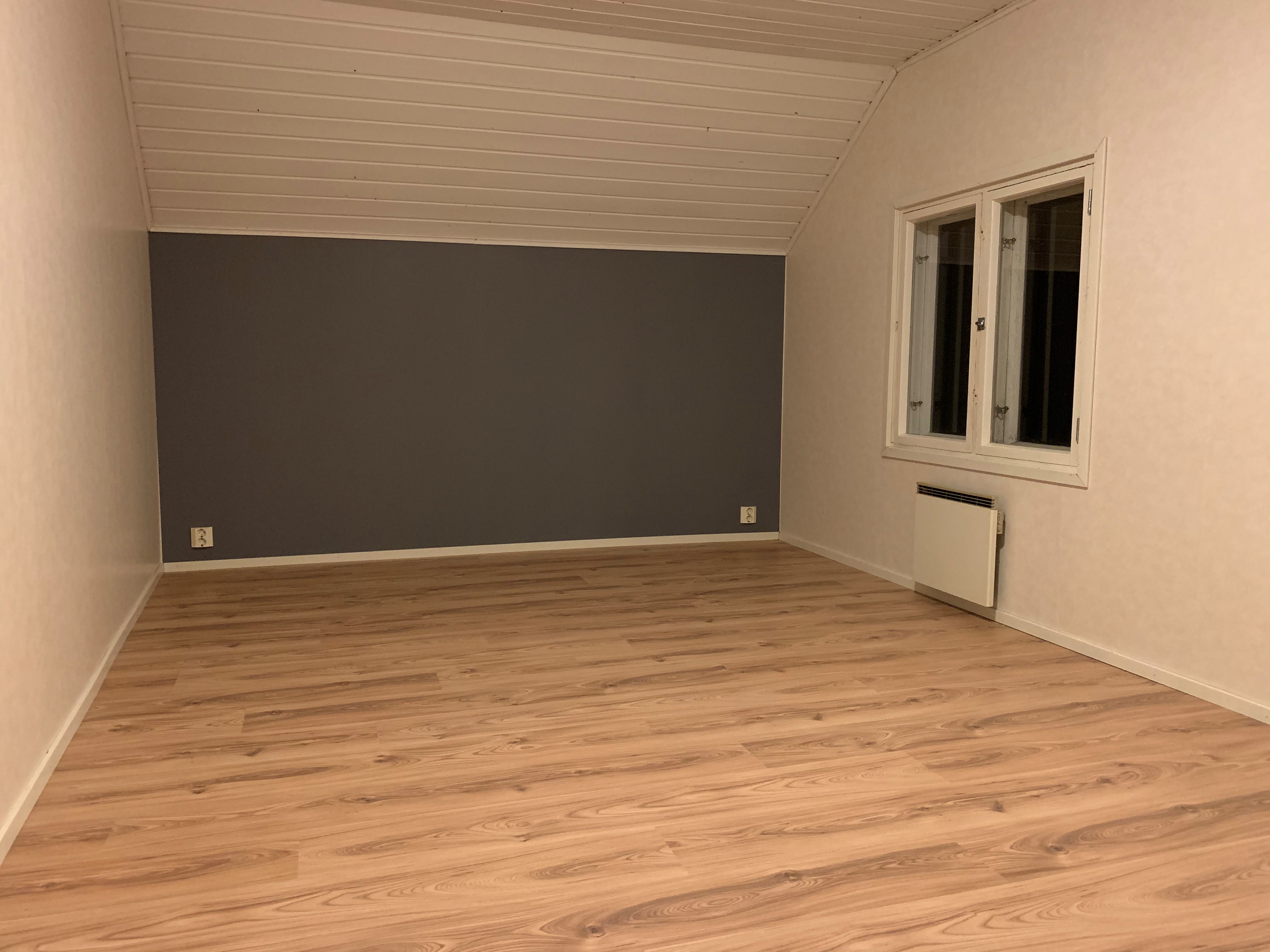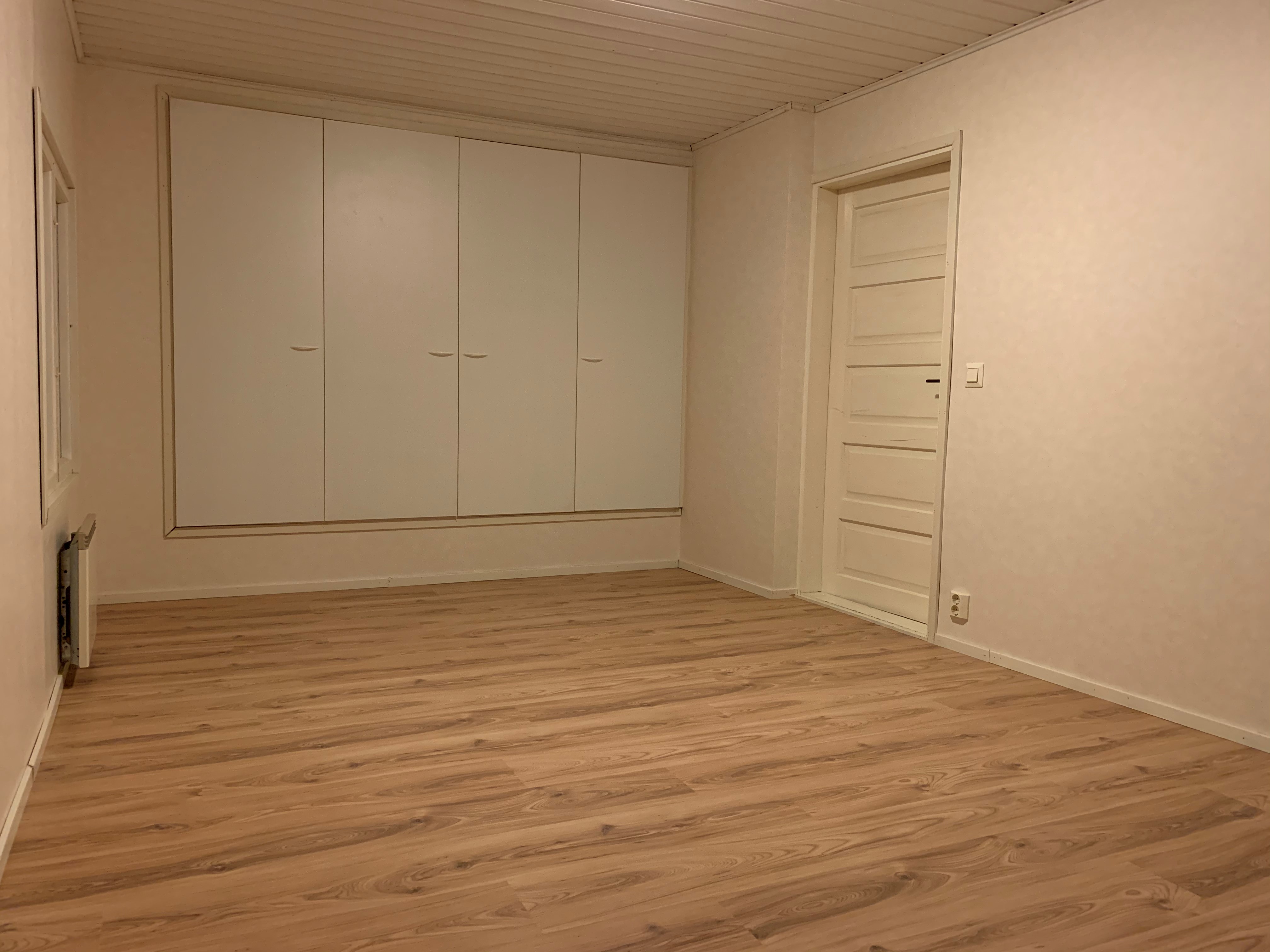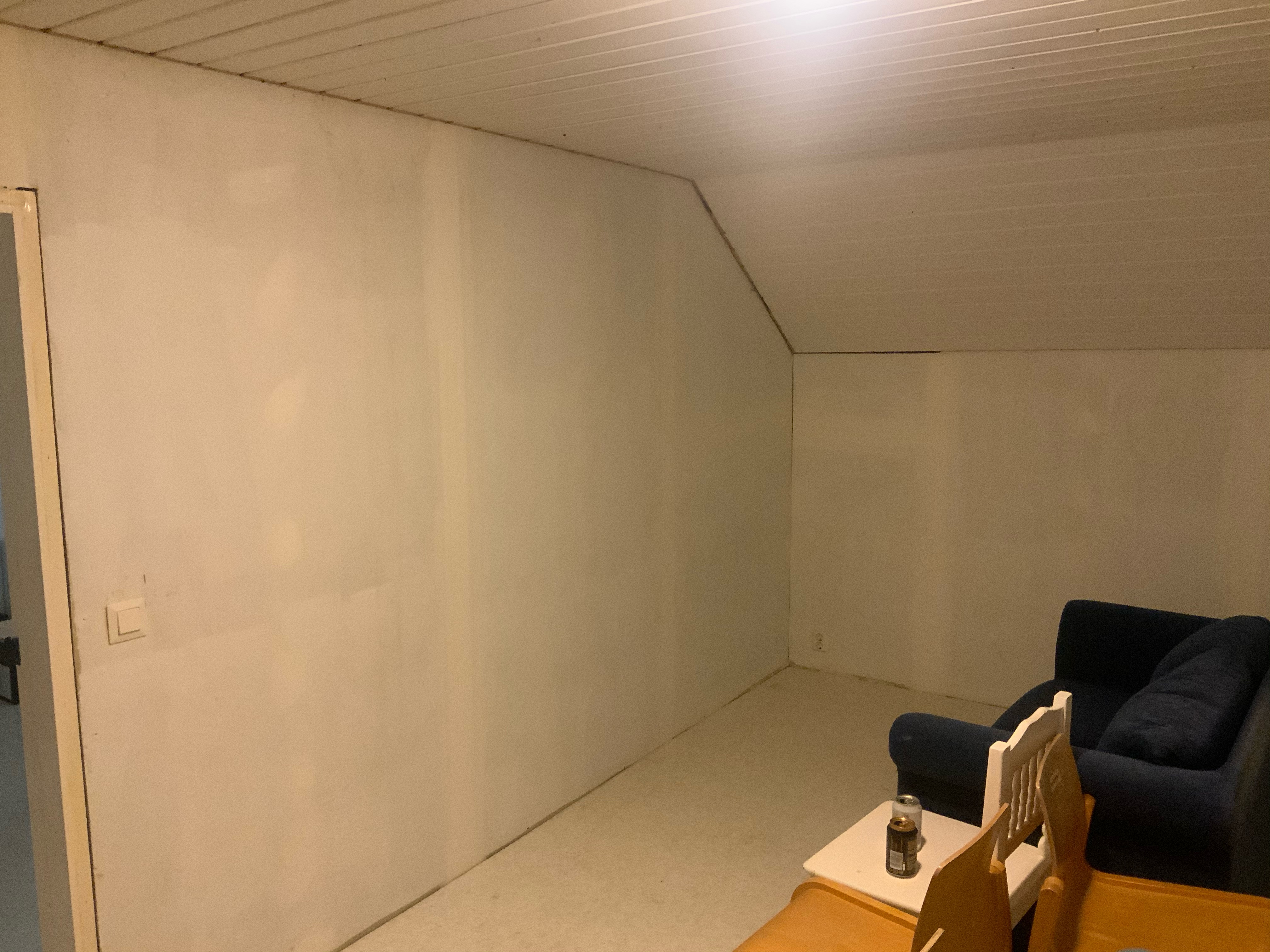 Laminaatti asennettiin tässä huoneessa muovimaton päälle koska lattia oli todella siisti. Vanhat katto- ja lattialistat saivat toistaiseksi kelvata.
