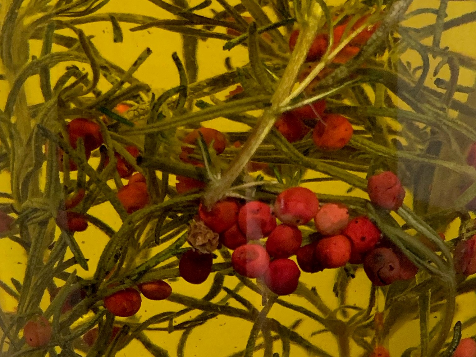 Leikkaa ja pese hyvän kokoiset rosmariinin oksat. Kuivaa oksat hyvin (itse kuivasin oksat talouspaperilla ja muutaman minuutin 50°C uunissa). Laita yrtit ja pippurit pulloon ja kaada öljy päälle niin että se peittää yrtit kokonaan. Öljy on valmista käytettäväksi jo muutamassa päivässä, mutta maustuu tietenkin enemmän vanhetessaan. Säilyy paremmin pimeässä ja viileässä.