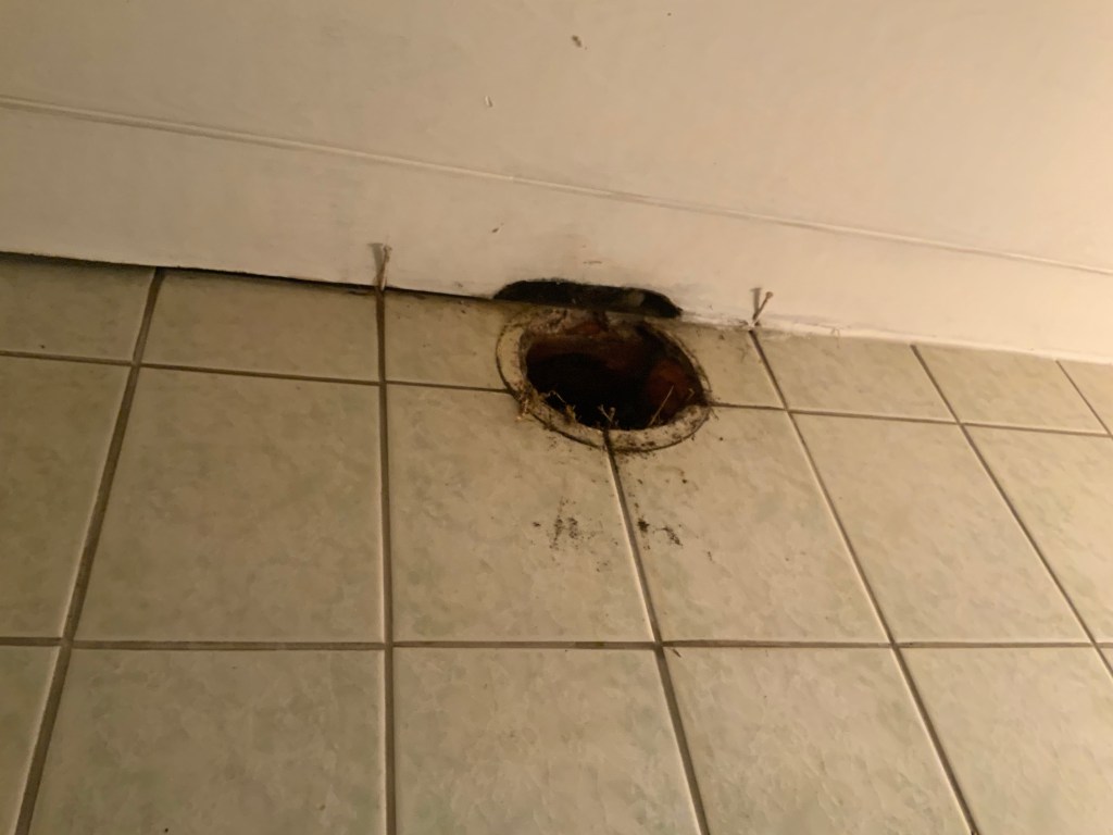 Ja lähtihän se naakanpesä vihdoin liikkumaan alaspäin. Nyt vaan tuumin, että mihinkä se risubetonikasa nyt on matkalla? Ja kun se vielä pysähtyi kun seinään mielestäni aika korkealle ollakseen piipun pohjalla, alkoi mieli taas järkkymään!