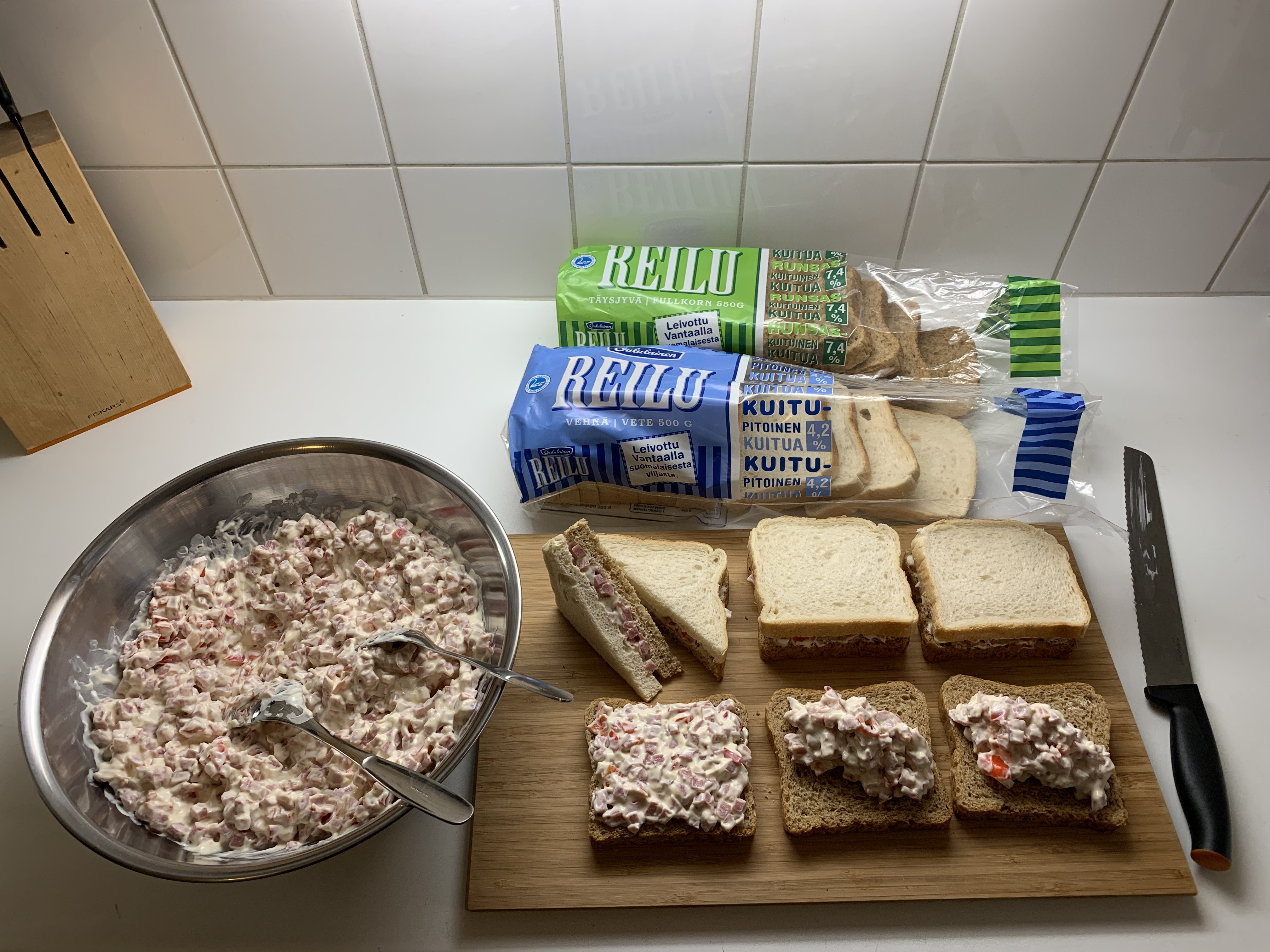 Vinkki! Näihin sopisi mainiosti oman maun mukaan monenmoiset vihannekset kuten sipuli tai paprika ja mausteitakin voisi käyttää enempi. Meidän talkooporukoissa oli vain sen verran rajoitteita että minä pidin vuuat todella yksinkertaisina.