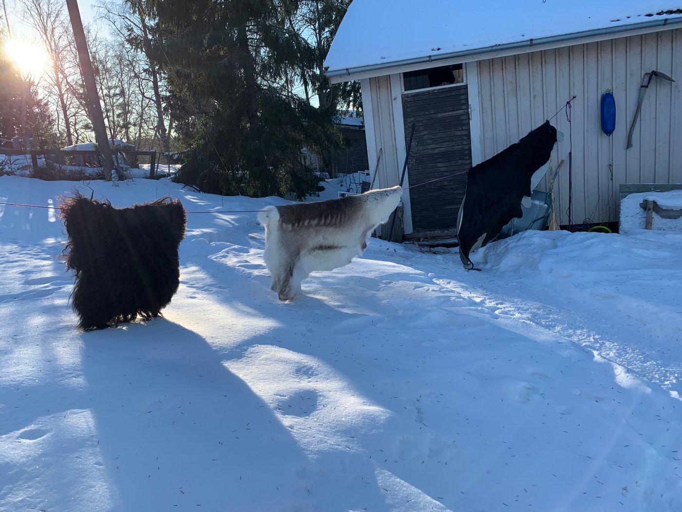 Lumi ja pakkanen mahdollistaa taljojen pesun helposti kotikonstein. Meiltä löytyi lampaan-, lehmän- ja porontalja näille pakkasille.