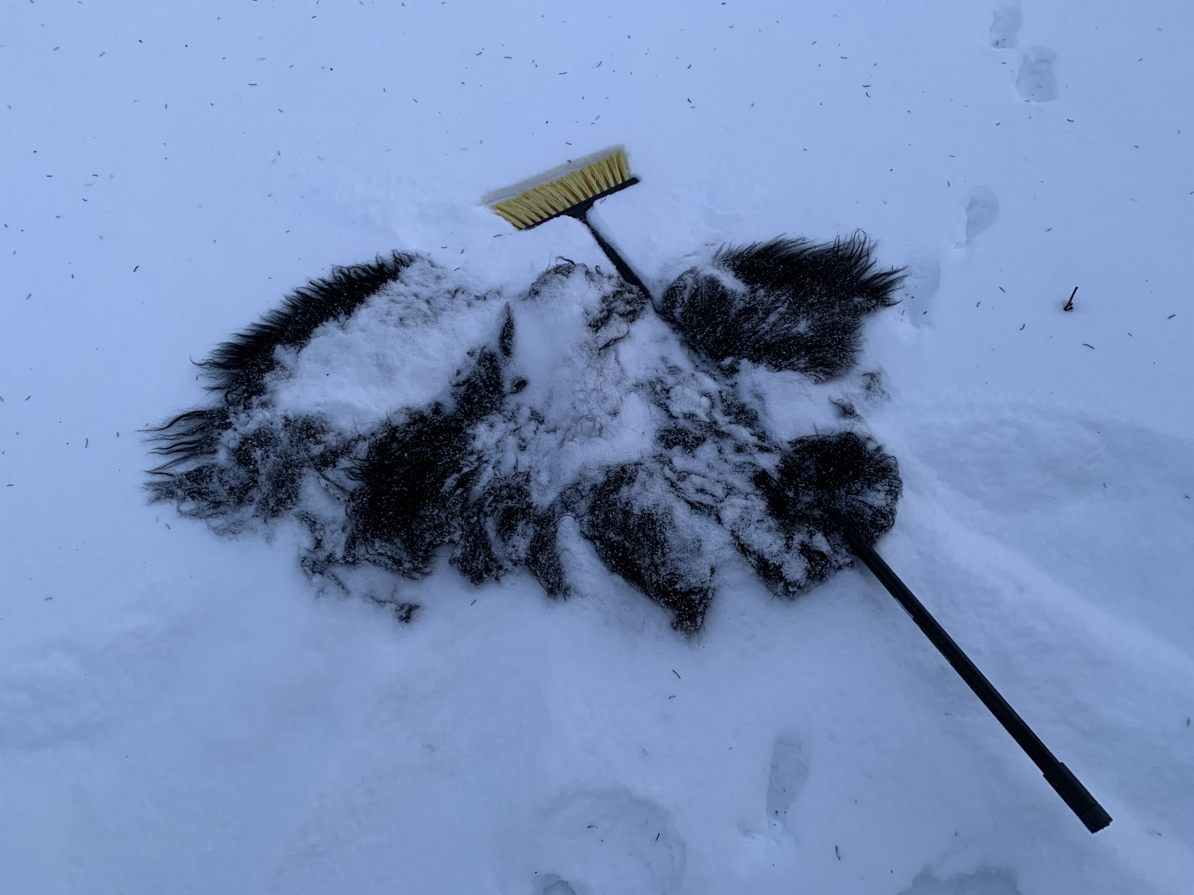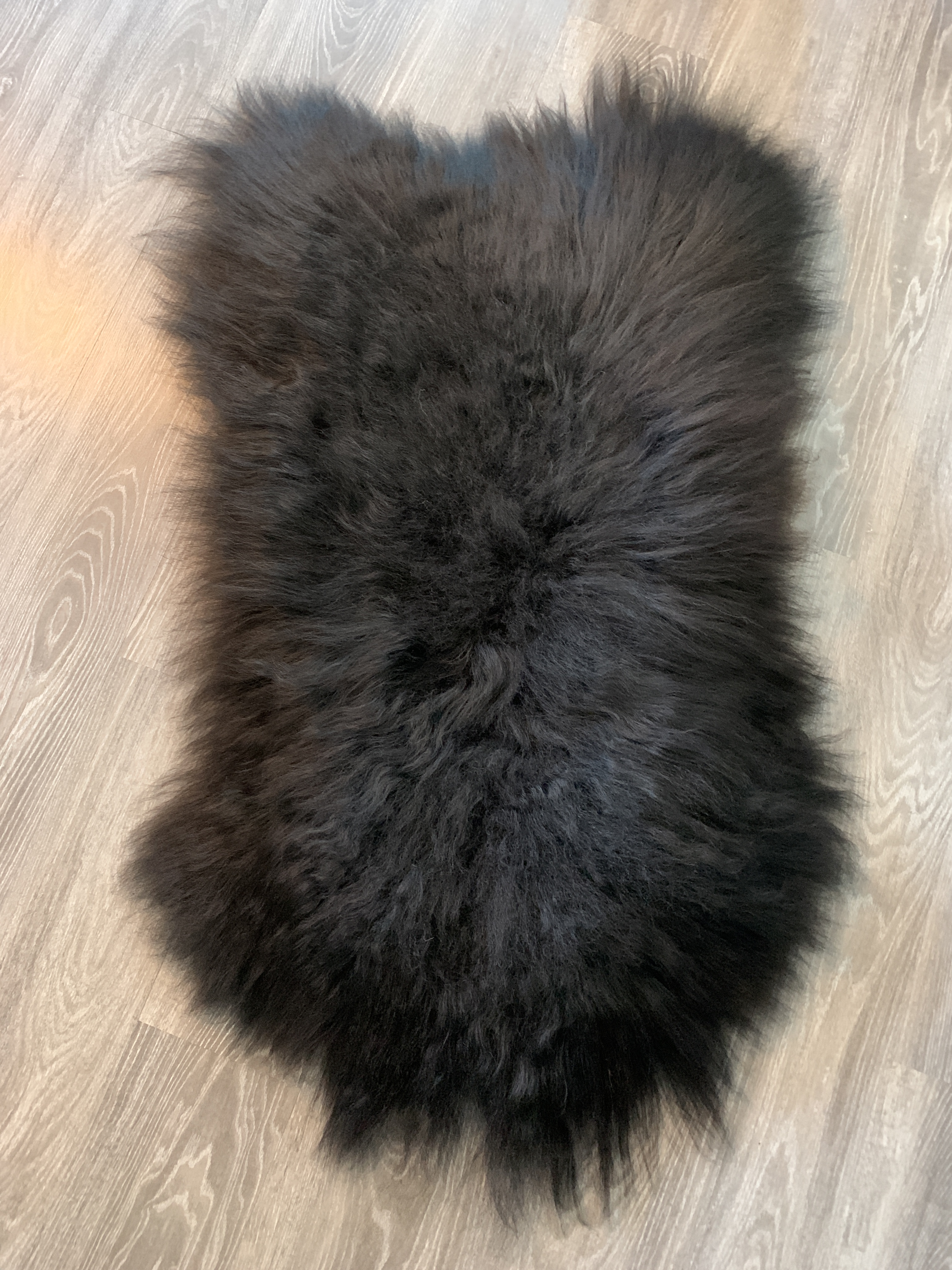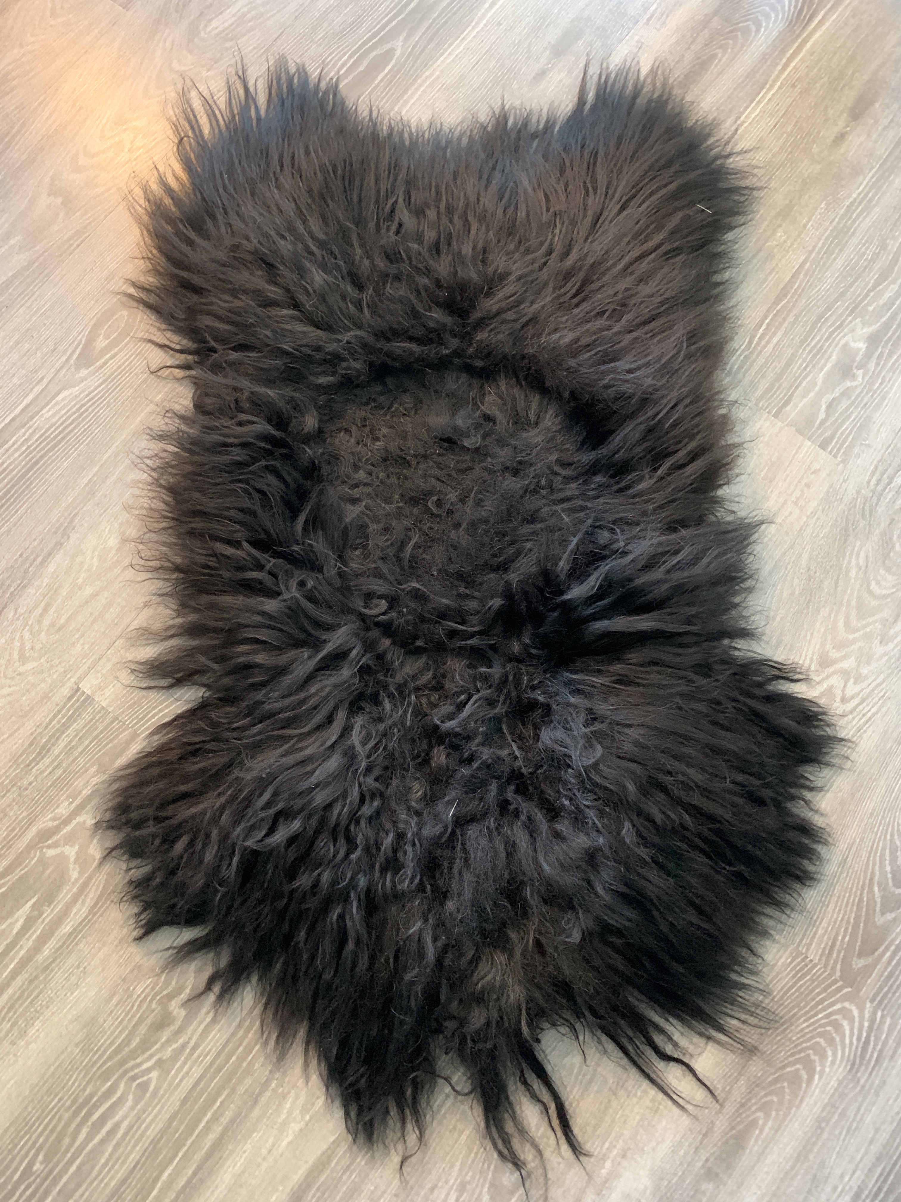 Pitkäkarvainen lampaantalja kaipasi vielä hieman harjausta. Harjasin taljan harvapiikkisellä lemmikkiharjalla jonka lainasin koiranomistajalta. Harva piikkinen kampa olisi ehkä voinut toimia paremmin.