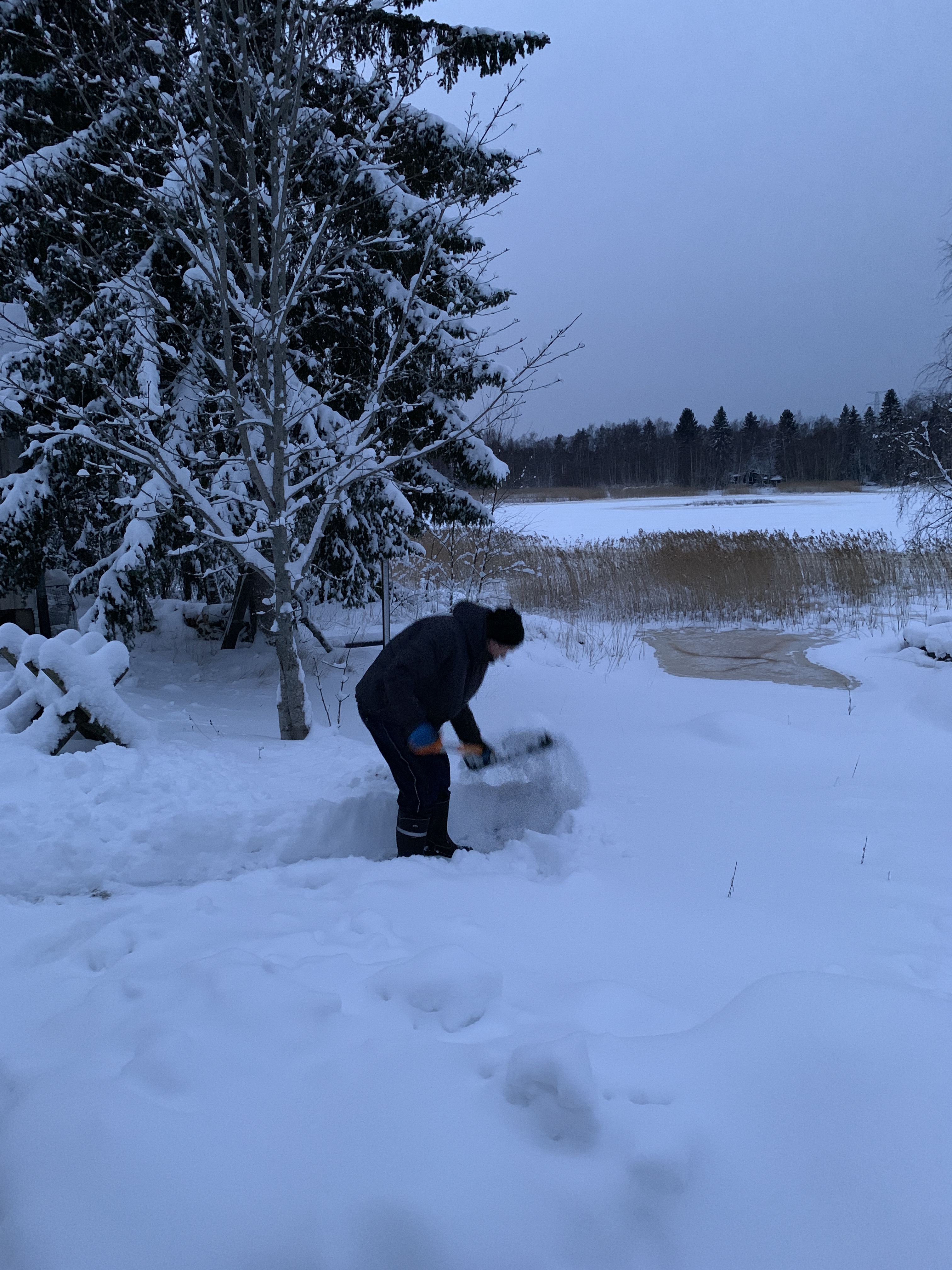 Kaiken keskellä on saanut vielä painaa käsipelillä jonkin verran lumihommia kun ei tässä nny tänä talvena hommaila pelejä eikä vehkeitä. Mutta lumityöt ovat silti tällä kertaa tuoneet vain mukavia ulkoilu hetkiä muuten vähän synkkään arkeen vaikka lunta on tullut tavattomasti ja se on pitkittänyt remonttihommia. Pikku happihyppelyt eivät ole pahitteeksi. Jopa Mörkö tuli kyläilemään! Ei voi muuta sanoa kuin mahtava talvi!