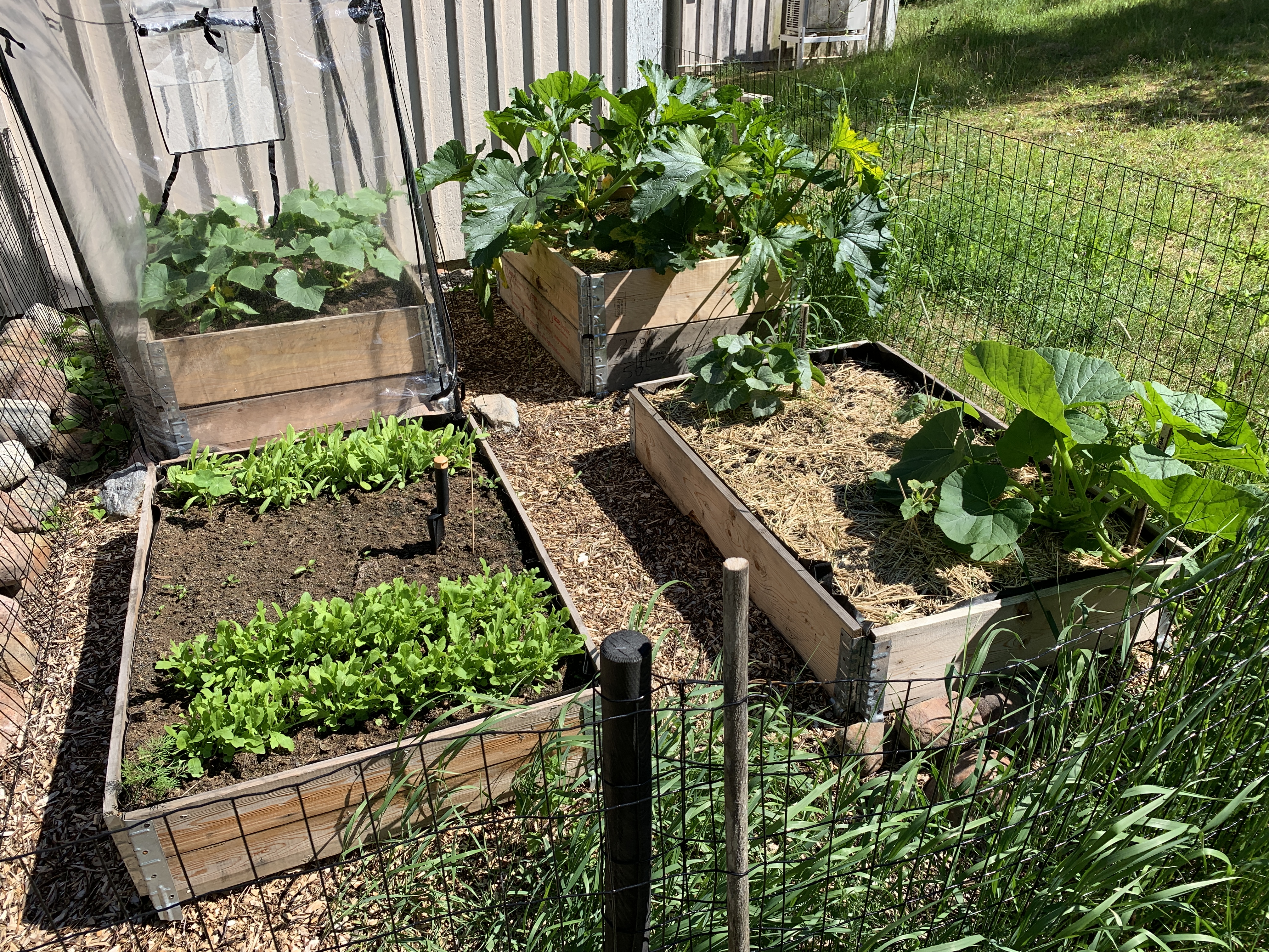 Vanhat lavakaulukset toimivat hyvinä kasvilaatikoina. Niitä myydään myös ihan uutenakin monissa kaupoissa. Lavakauluksien päälle myydään myös kaikenlaisia kasvihuoneita ja kehikkokaaria. Mekin sitten päädyttiin ostamaan kasvihuone yhden tuplakauluksen päälle (Biltema 23,90€) ja muotoonommeltu harsokangas (Bauhaus 4,95€) toiseen. Korkea muovinen kasvihuone ei kauaa kestänyt merituulia, kun jo repeytyi. Ensi vuonna hankitaan matalampaa mallia tai lasista.