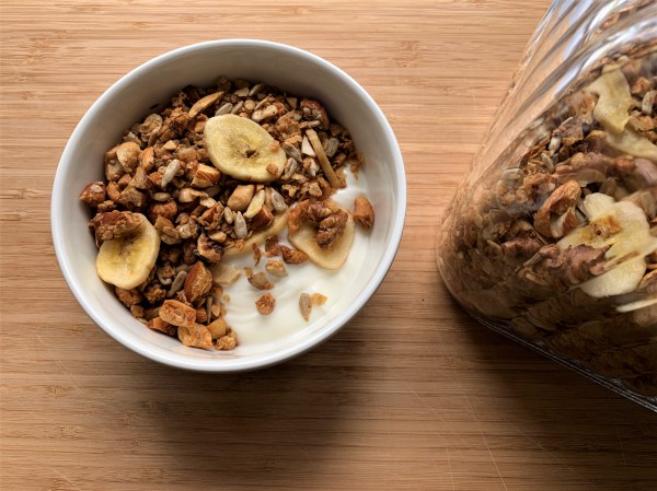 Itse tekemällä saa juuri sellaista mysliä kuin haluaa. Voi käyttää lempimakujaan tai tiettyä ruokavaliota noudattaen. Kokeile erilaisia mausteita, hiutaleita, siemeniä, pähkinöitä, kuivattuja-, jogurtti päällysteisiä hedelmiä tai vaikka suklaata. Vain mielikuvitus on rajana. Minäkin suunnittelin laittavani tähän kanelia ja kardemummaa, mutta päätin että lisään ne sittenkin suoraan annokseen jos tekee mieli. Mysli6 dl kaurahiutaleita (240g)2 dl... Continue Reading →