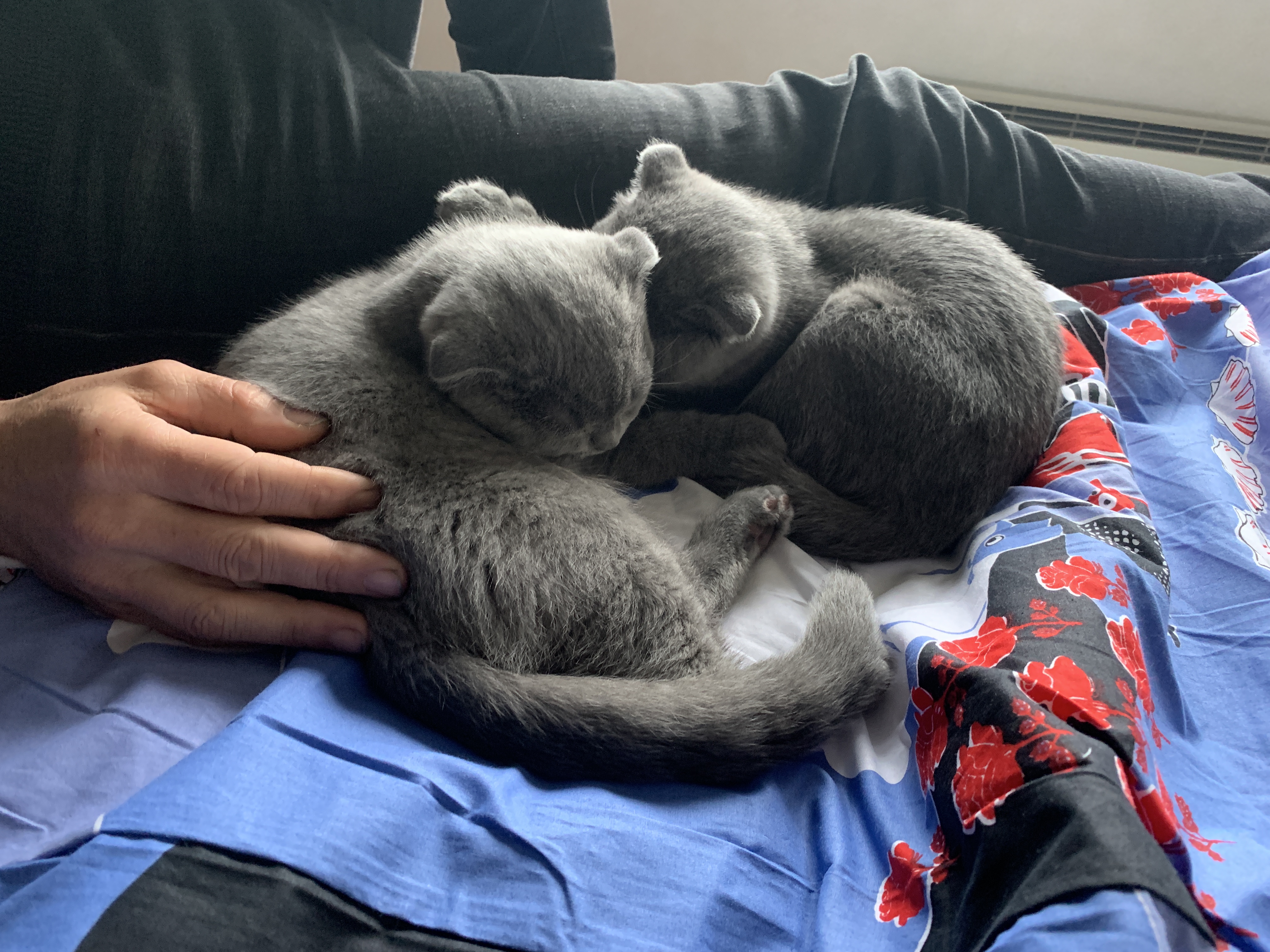 Hellyyttä rakastava kaksikko kotiutui hienosti. Tosin eka päivä jännitettiin ja viistettiin kaikki sängyn- ja sohvanalustat. Riehakkaaseen leikkiin ryhdyttiin silti heti. Onneksi heillä on myös toisensa ja rohkeampi Veikko näyttää mallia aremmalle Voitolle. Nurkat oli nuuhkittu nopeasti ja lempipaikat valittu vieläkin nopeammin. Syliinkin tullaan jo nukkumaan. Pikku ahmateille ruoka maistuu paremmin kuin hyvin vettä unohtamatta ja hiekkalaatikolla on osattu käydä hetimiten. Ei tässä paljoon jäänyt toivomisen varaa.