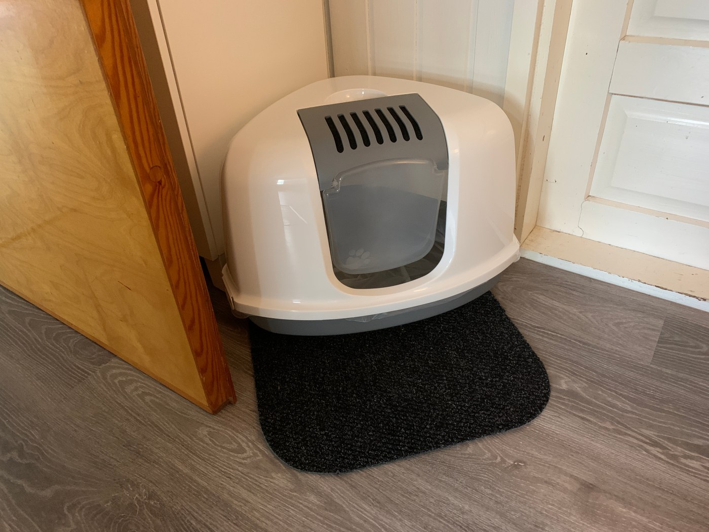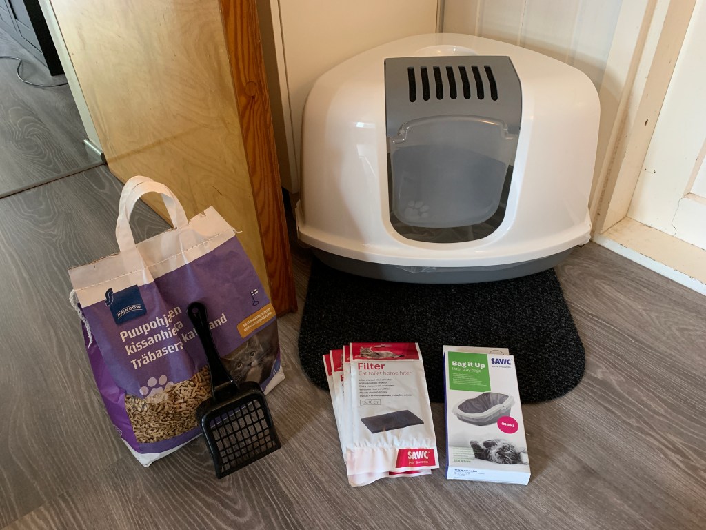 Päätin kokeilla puupohjaista kissanhiekkaa (pellettejä) kun pari tyyppiä sitä kehuskeli, että pitää hajut hyvin kurissa ja pitää muuten paikkansa! Miinuksena kuulemma on vain purujen tarttuminen tassuihin ja leviäminen. Joten ajattelin yrittää ennalta ehkäistä tätäkin ja tehdä maton kissanhiekkalaatikon (Savic Nestor Corner-kulmavessa) eteen. Molemmissa eteisissämme on kuramattoa estämässä roskien kulkeutumista sisälle ja ne toimii suht hyvin. Siitähän se idea sitten lähti.
