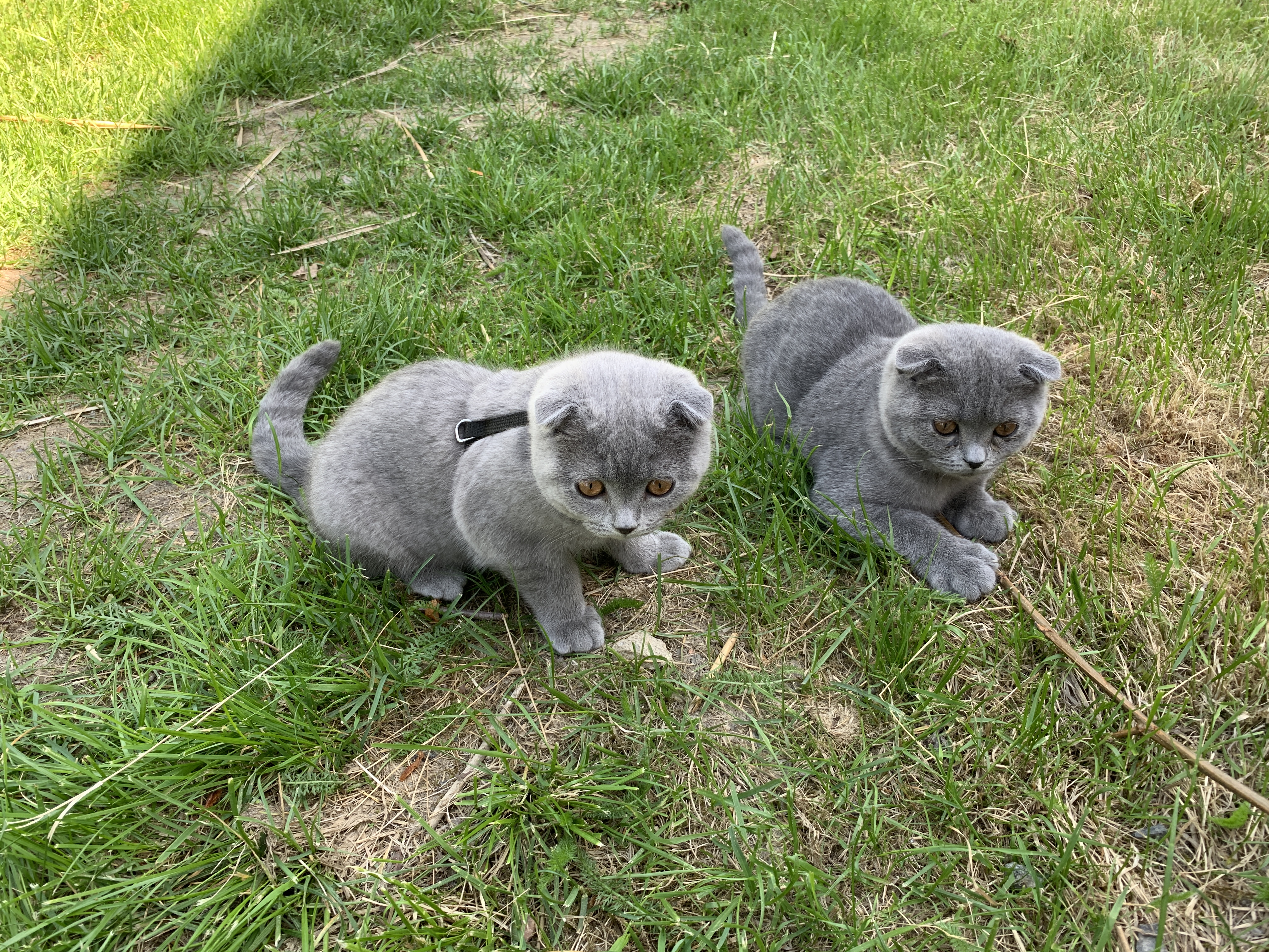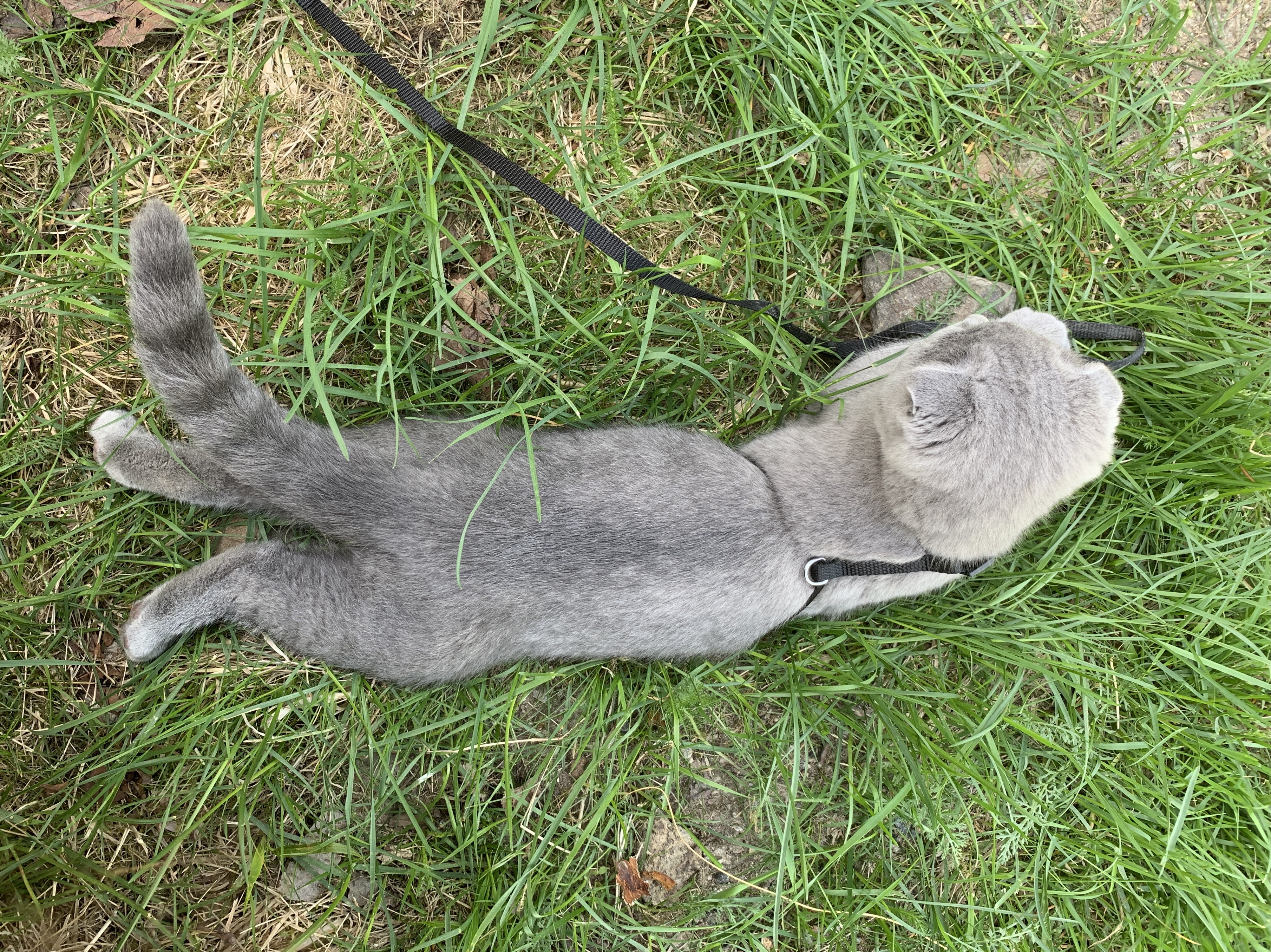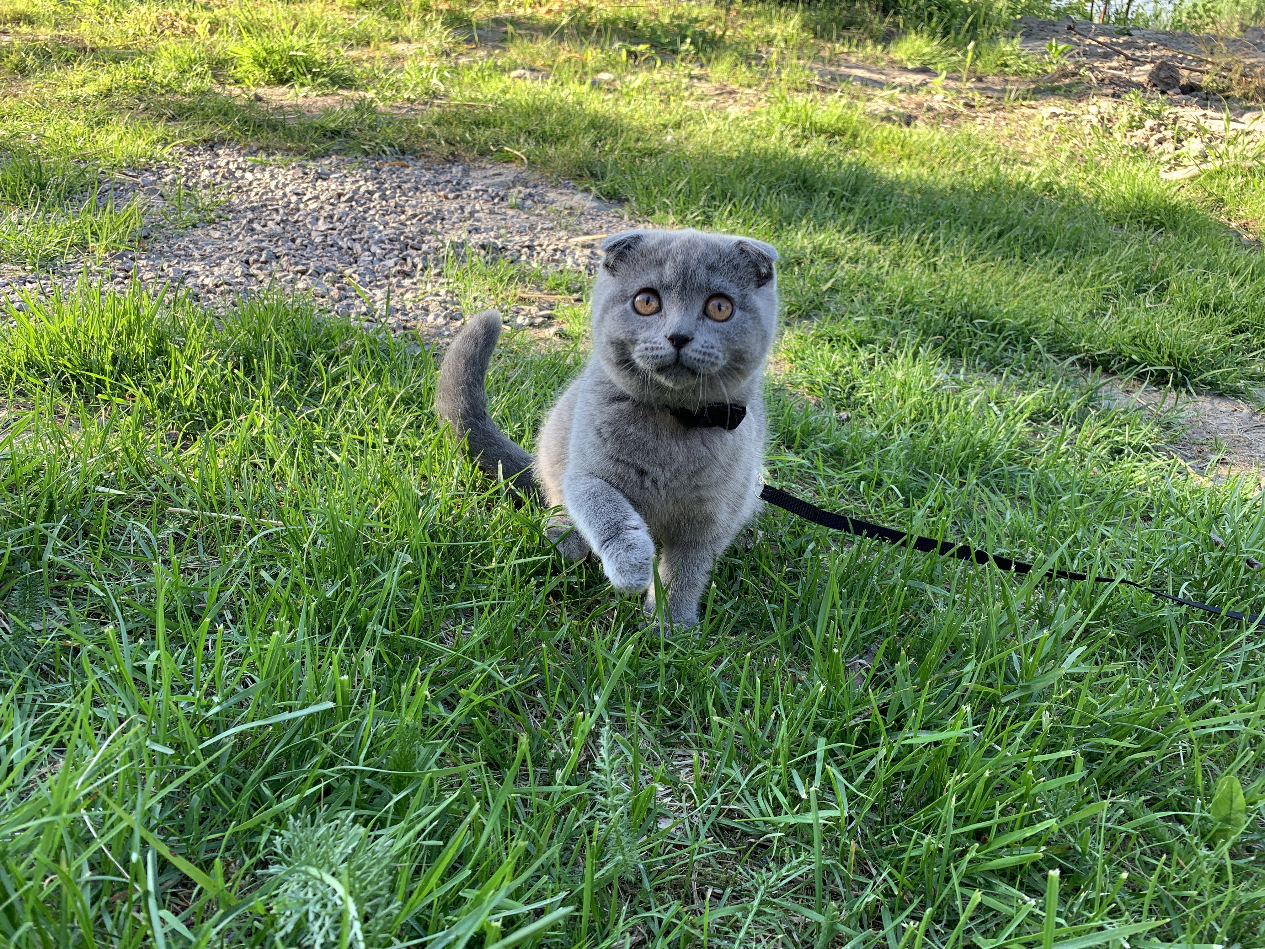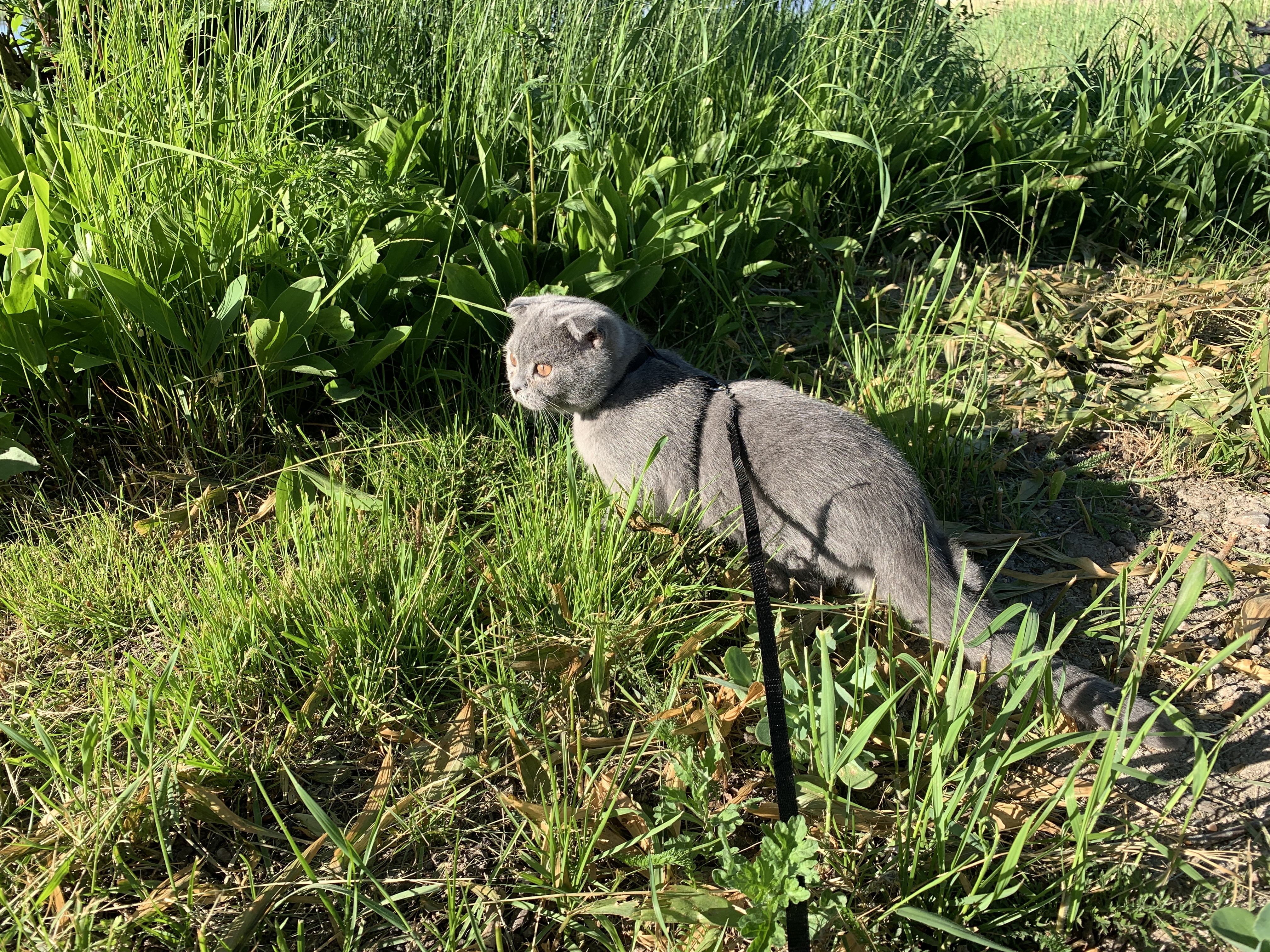 Valjaisiin totuttiin nopeasti ja hienosti. Pari kertaa kaatuiltiin ja hiukan aikaa käveltiin hassusti, mutta kun päästiin ulos jännitys taisi viedä voiton ja valjaat unohdettiin. Ulkona arasteltiin ekalla kertaa jonkin verran, mutta yllättävän uteliaasti silti nuuhkittiin nurkat. Toisella kertaa sitä pissittiin jo hiekkakasaan ja pyydysteltiin öttiäisiä. Kolmannella kertaa sitä leikittiin ja hypittiin ympäriinsä, mutta onneksi ei vielä liian rohkeasti. Neljännellä kertaa he olivat hetken ilman hihnaa, jotta saivat kirmata vapaammin. Hienosti pysyivät lähellä varsinkin kun emännällä oli namipussi taskussa ja isäntä oli leikkituulella. Sittemmin ostettiin flexit jotta kirmailu onnistuu hiukan paremmin liekassakin. Toki isompana he saavat mennä pihalle itsekseen jos näemmä sen parhaaksi.