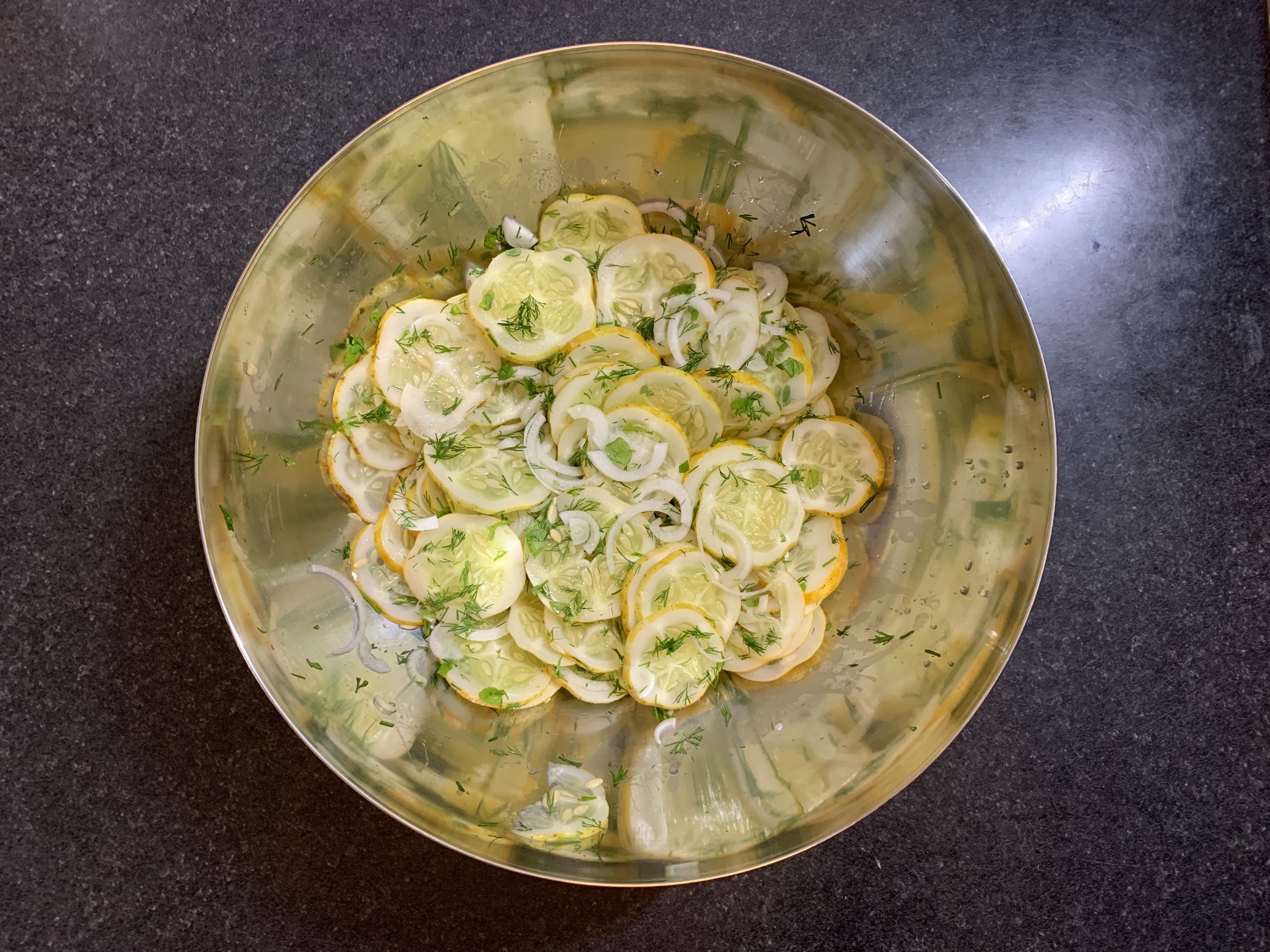Viipaloi sitruunakurkut ohuiksi siivuiksi ja kuivaa hiukan vaikka talouspaperin avulla. Sekoita etikka, öljy, soija, sokeri ja suola. Sekoita kurkut ja kastike keskenään ja kaada vadille.