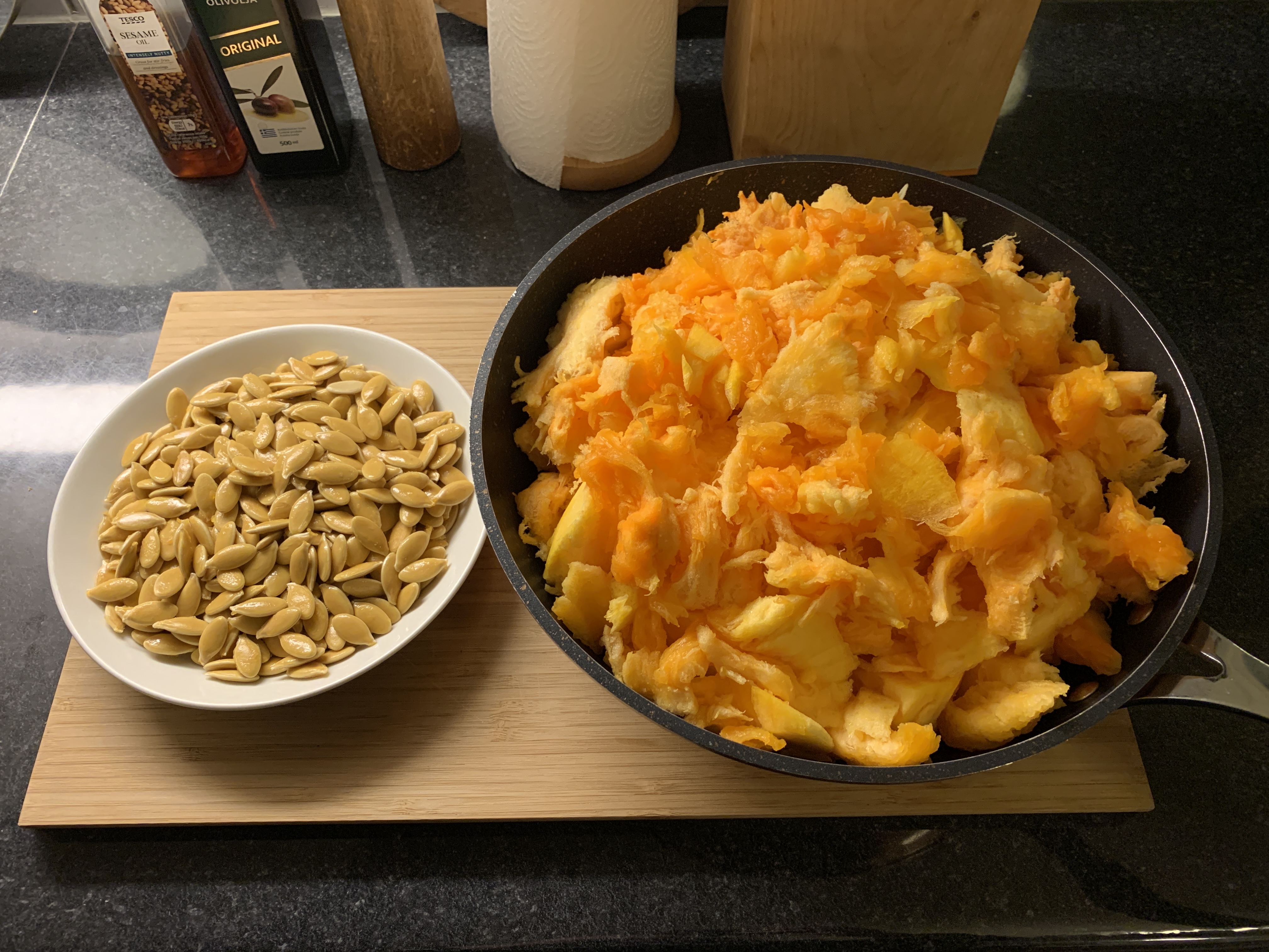 Vinkki! Kurpitsan siemenet voi paahtaa kuivalla kuumalla pannulla ja maustaa esimerkiksi hunajalla ja suolalla. Tarjoile vaikka salaatin päällä tai napostele sellaisenaan.