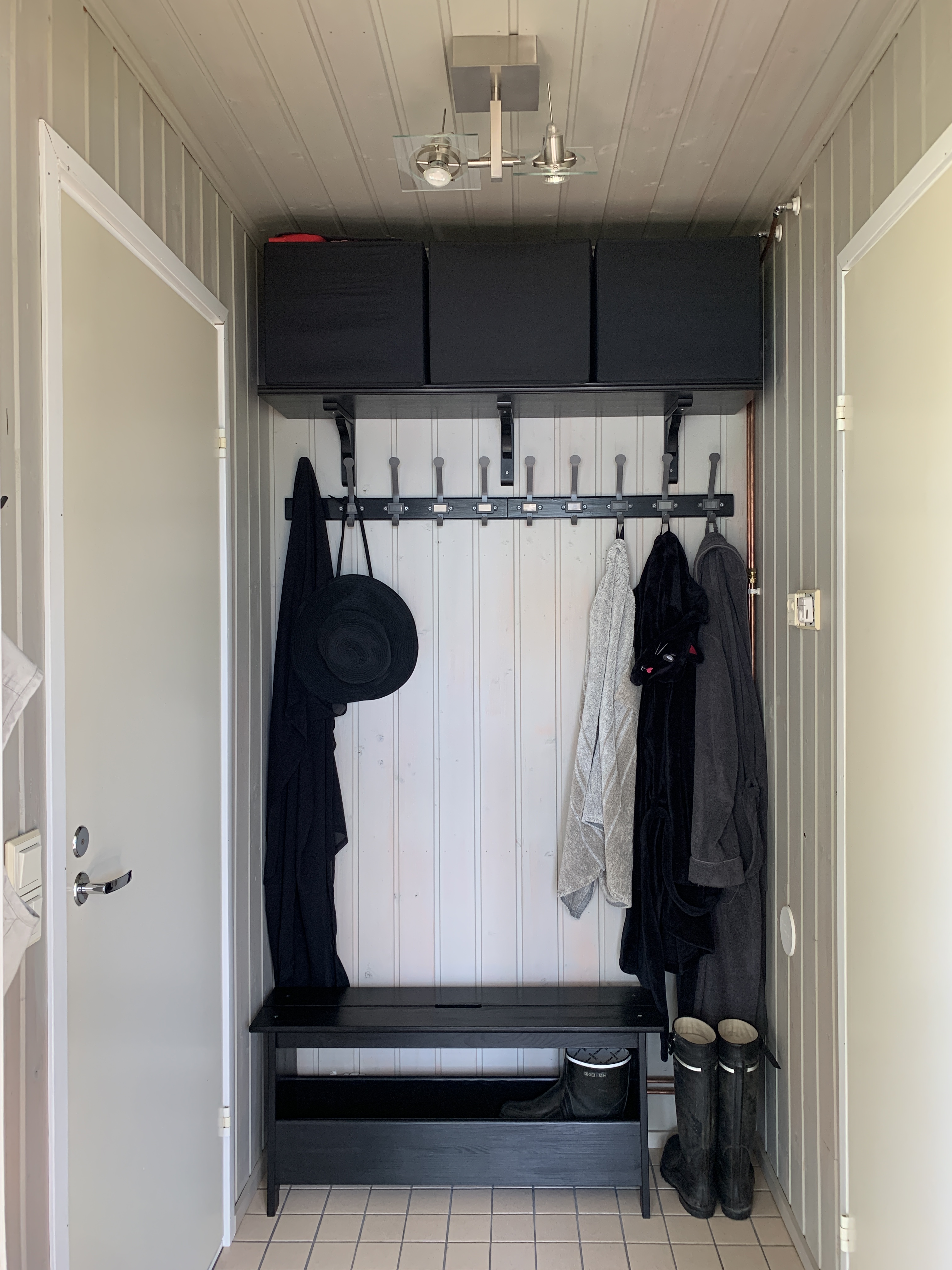 Perjohan penkki, Bergshult hylly, Ramshult kannattimet ja Kartotek naulakot (Ikea)