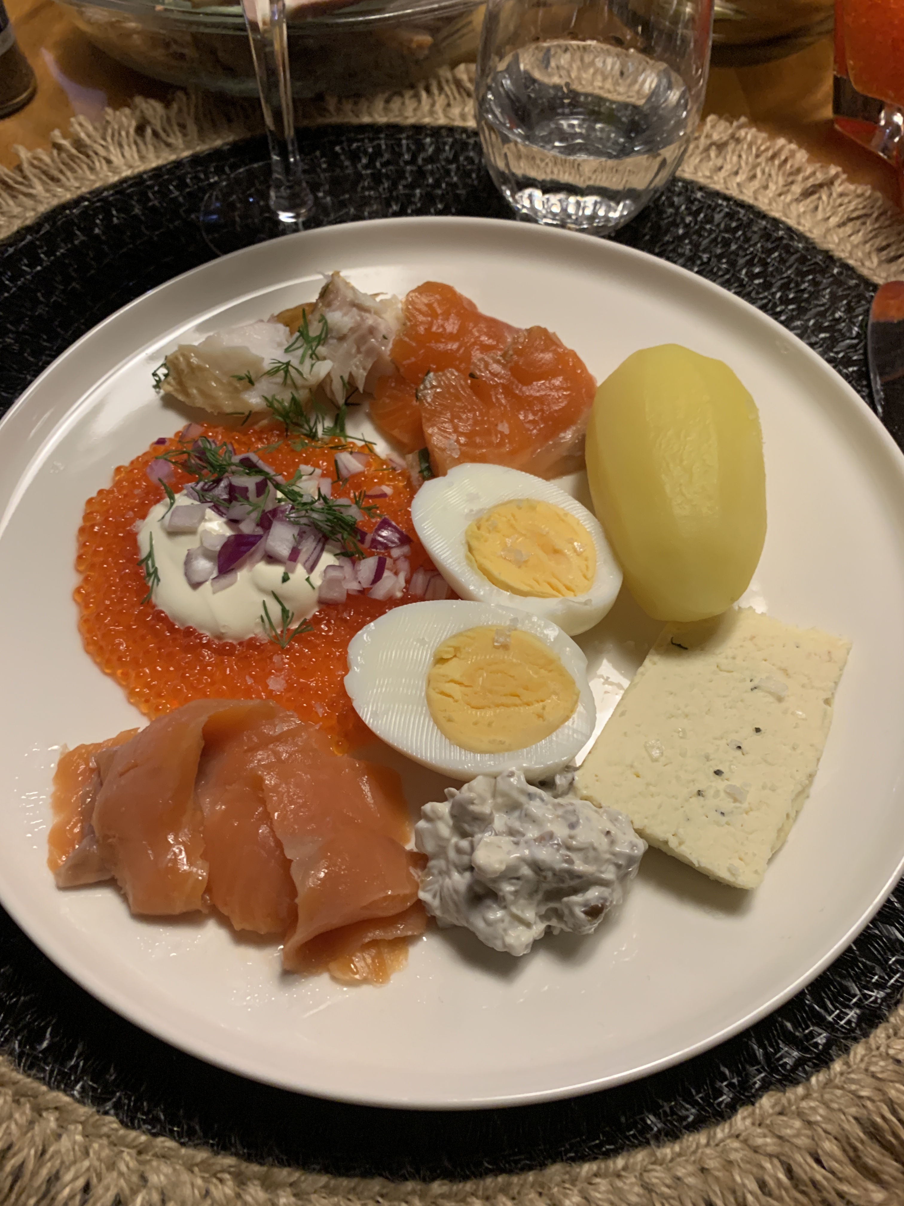 Meidän joulun lempiherkut ovat kirjolohenmätileivät, wasabisilakat ja juustotarjottimet. Myös perinteiset jouluruuat maistuvat ja ai että kun joulukinkusta tulee hyvät lämpimät voileivät joulun jälkeen.